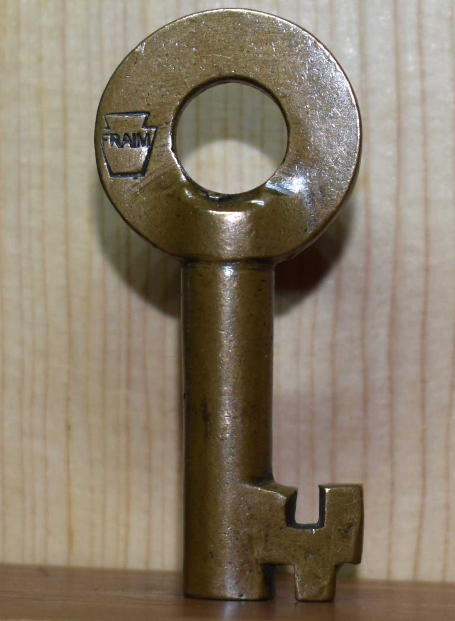 Remarks: ca. early 1900s Superb stamp marks and gold patina. Key is listed in the "American Railways Switch Key Directory."
