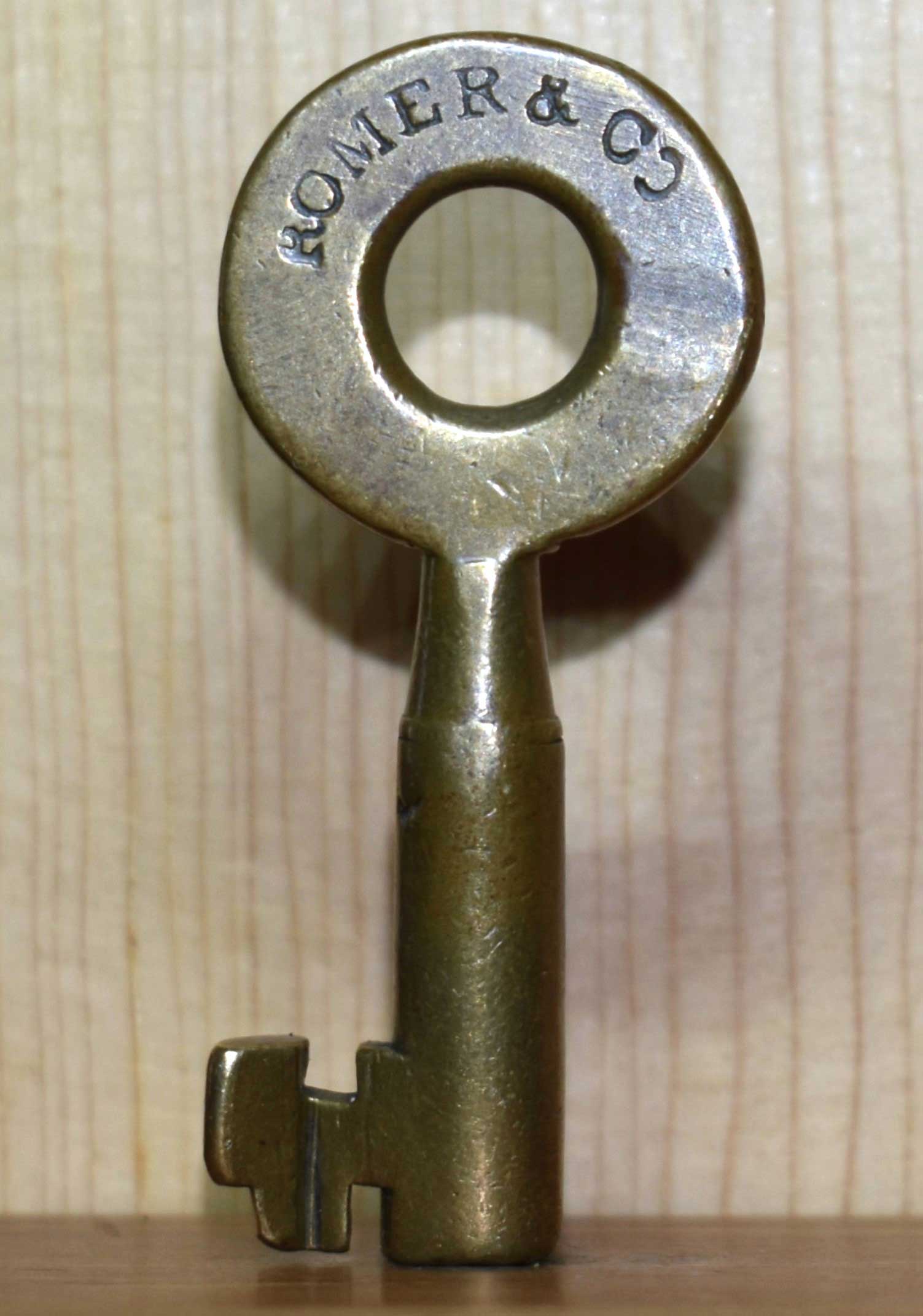 Remarks:ca. 1918-21 Forged by the Fraim Co. Superb stamp marks and copper/gold patina. Nice early Belt key.