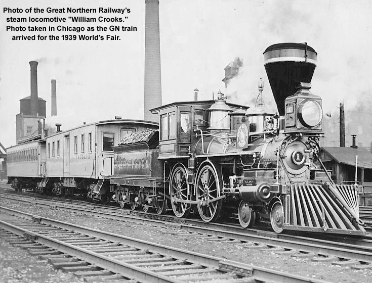 The very first predecessor railroad to the company was the St. Paul and Pacific Railroad owned by William Crooks. He had gone bankrupt running a small line between St. Paul and Minneapolis. He named the locomotive (see photo above) he ran for himself the "William Crooks" and it would be the first locomotive of the Great Northern Railway.