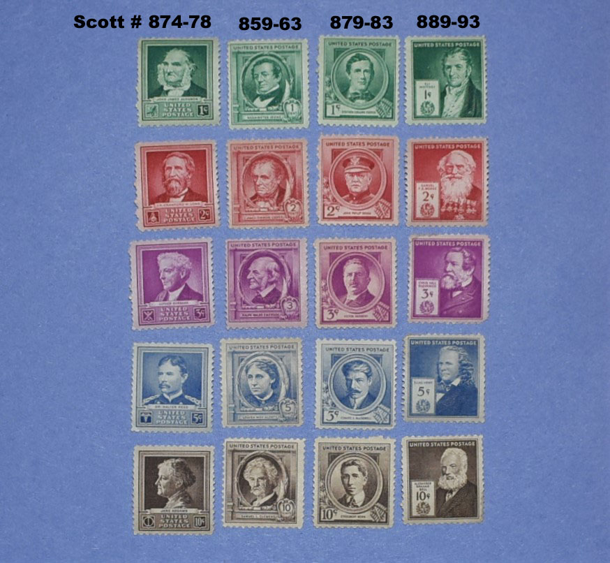 Scott Stamps: 859-63, 74-78, 79-83, 89-93 Price: $32.99